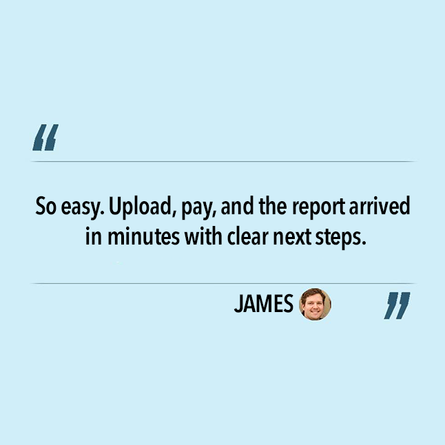 Within minutes, you receive a clear report that shows what is strong and what needs fixing.